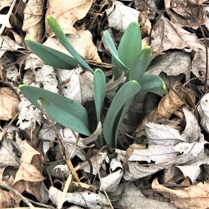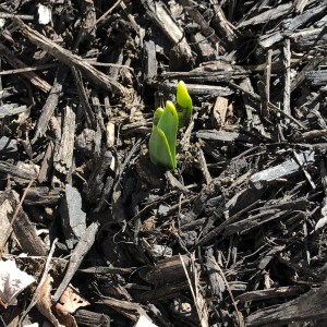 We’ve been having some warmer days, and that coupled with the calendar has resulted in some of the bulb sprouts making their appearance in our flower and herb garden.