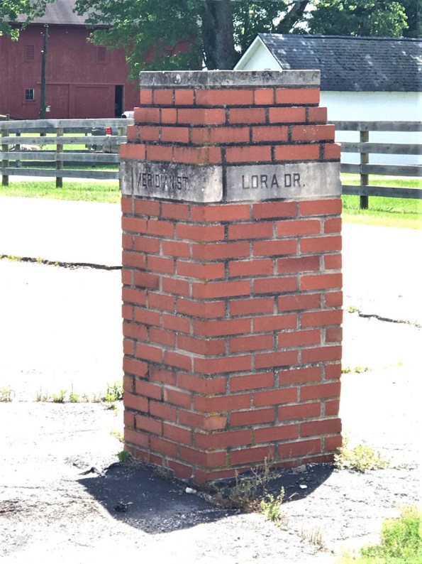 No green and white street signs on a pole for this intersection! This brick pylon with stone street signs is in the little town of Boggstown, Indiana, south east of Indianapolis.