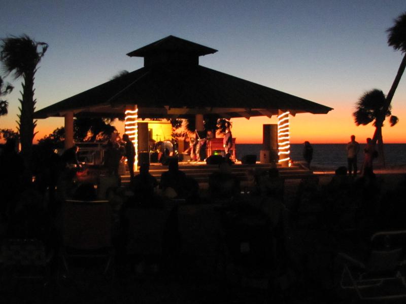 Sunset Beach is just beautiful. The covered stage was perfect for live music, and everyone of the many folks there enjoyed the music, the bonfire and the available refreshments.