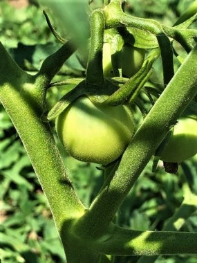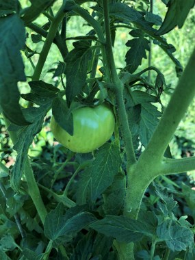 Today we spotted the first tomato on one of our plants. There are more flowers on both of our plants and we hope they will continue to produce.